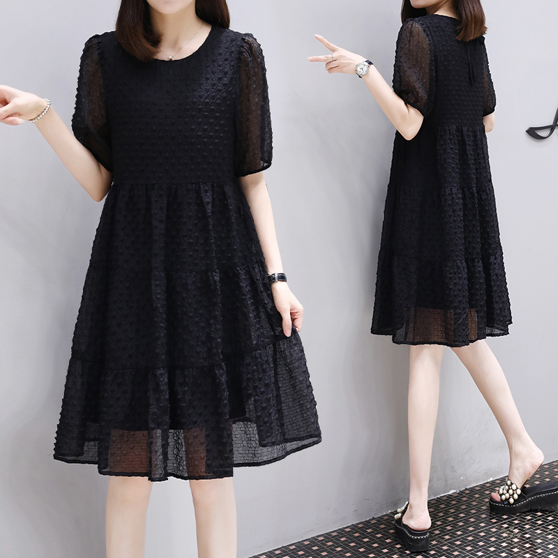 爵莱菲大码 富家千金小香风减龄娃娃领宽松连衣裙女高级感小黑裙