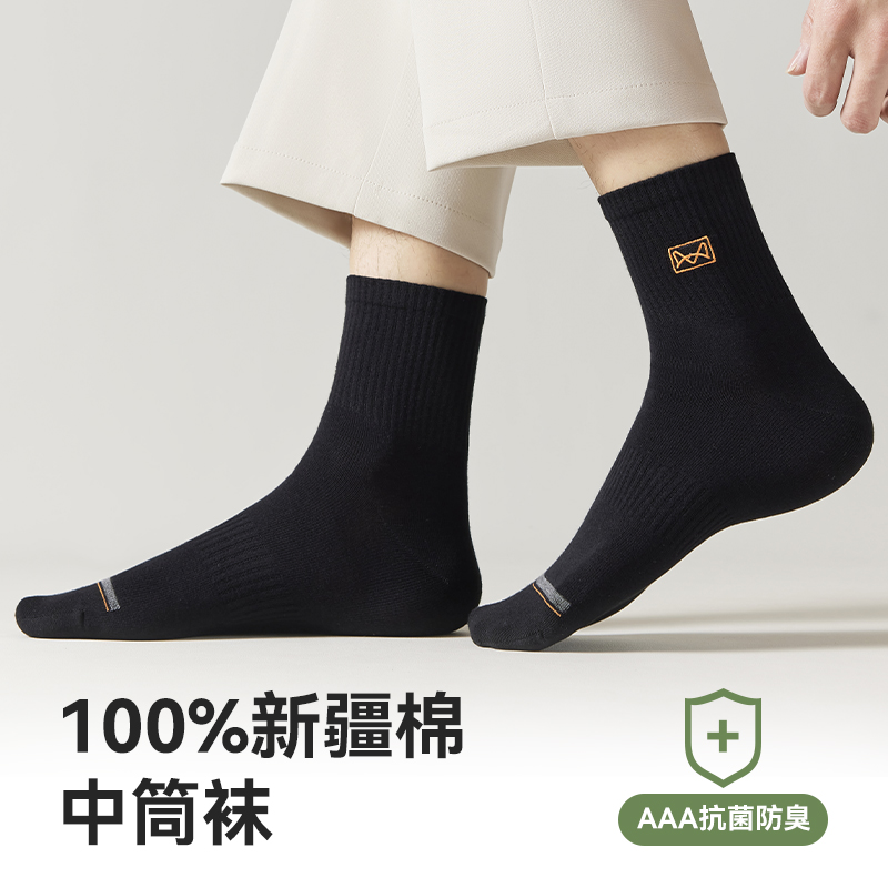 黑色商务棉袜 青少年男士 回力袜子男款 7A抗菌中筒袜吸汗防臭春秋季