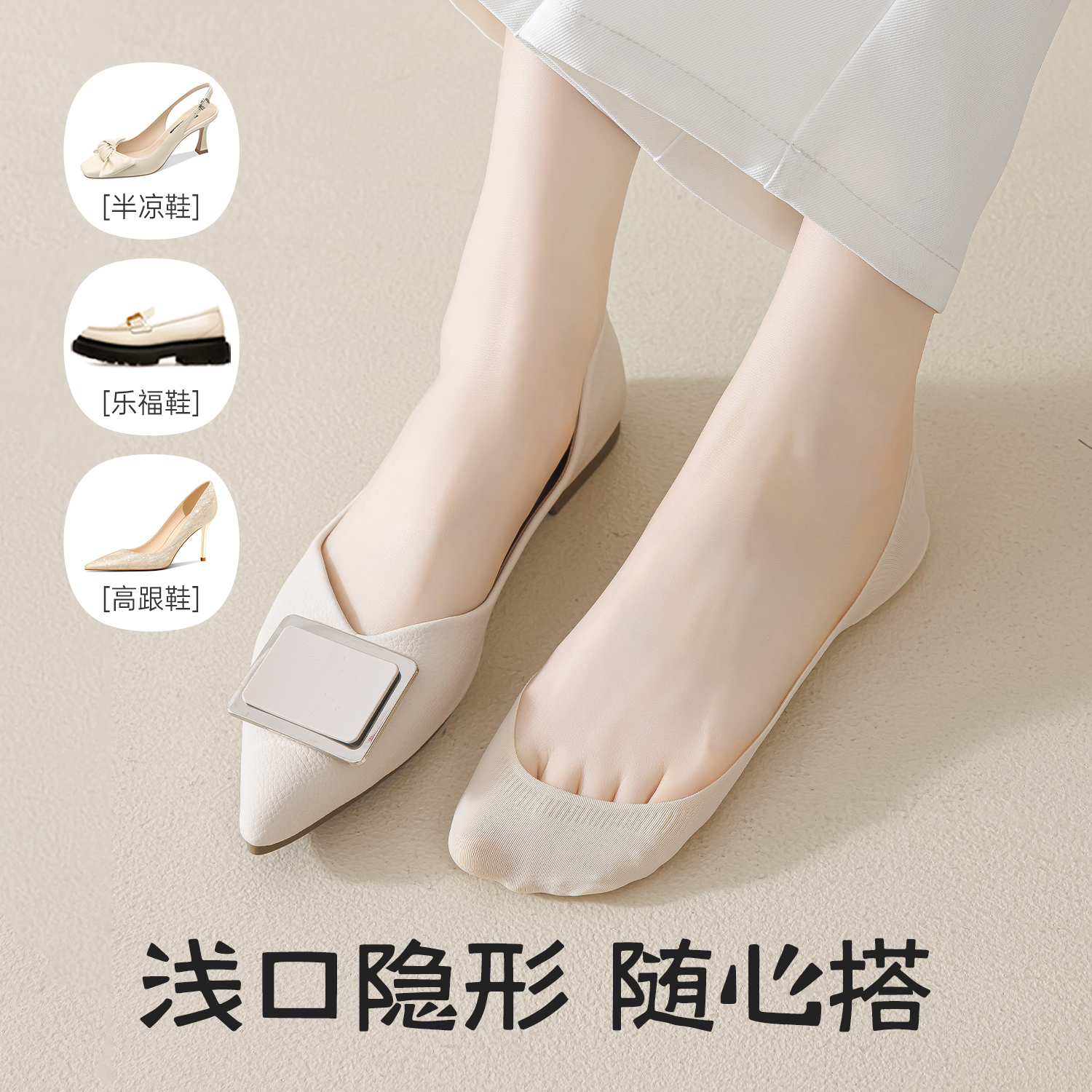 高跟鞋 袜子薄款 袜子 冰丝隐形袜棉制底防滑不掉跟浅口鞋 船袜女夏季