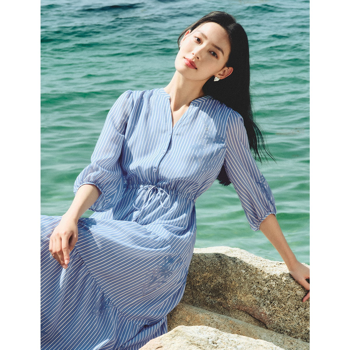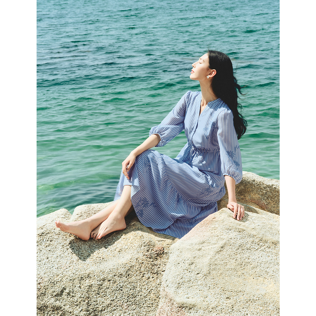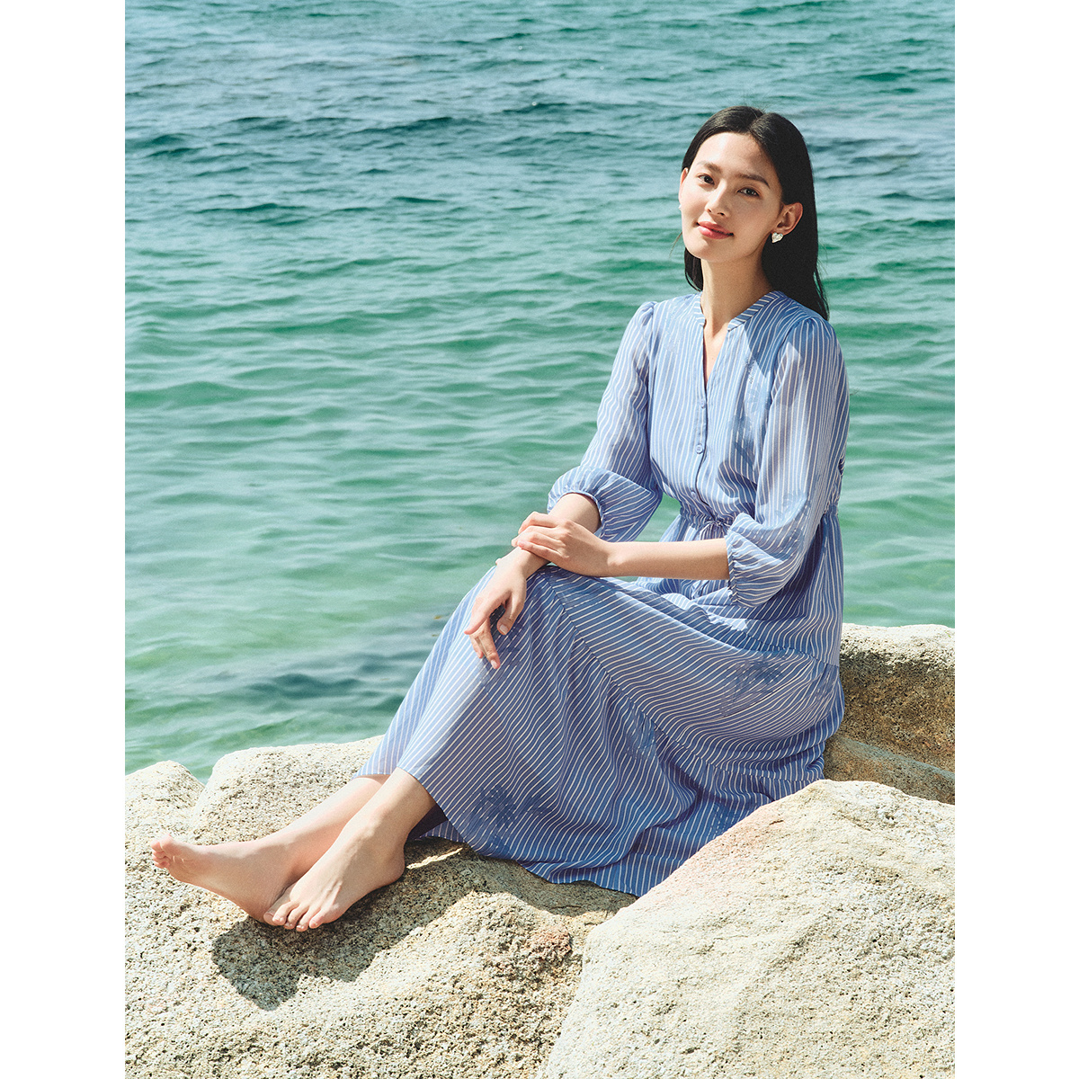 法式 轻礼服连衣裙2024夏新款 无袖 长裙子 朗姿三醋酸Basic衣橱