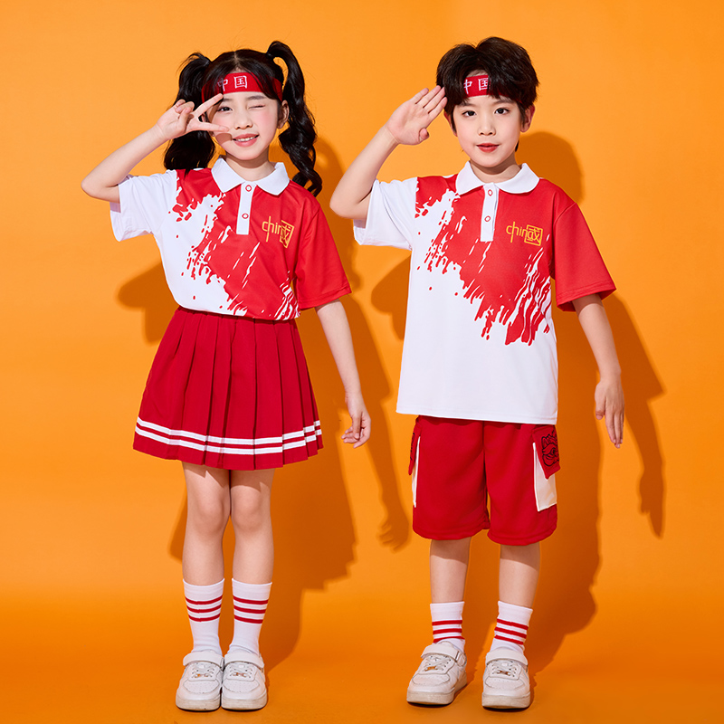 儿童合唱演出服幼儿园班服小学生运动会校服中国啦啦队服装 表演服