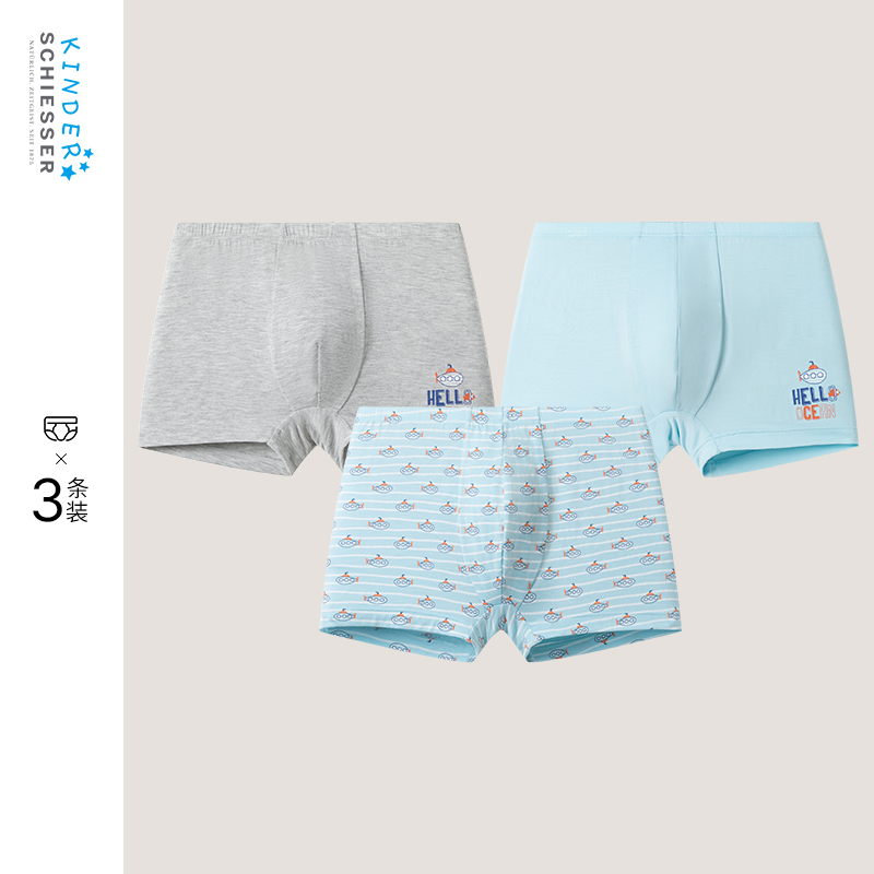 3条三枪纯棉印花青少年内裤 胖童发育期 男A类面料桑蚕丝抗菌加大码