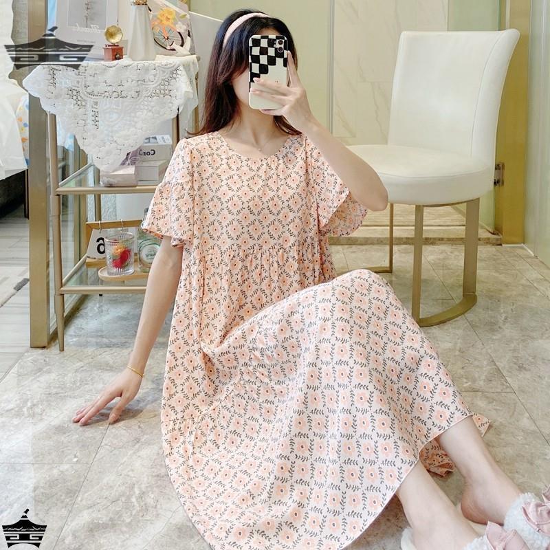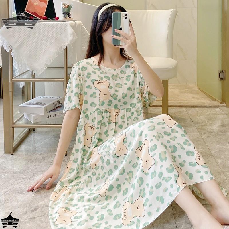 可爱连衣裙新款 棉绸睡裙女士夏长款 韩版 睡衣短袖 孕妇人造绵棉大码