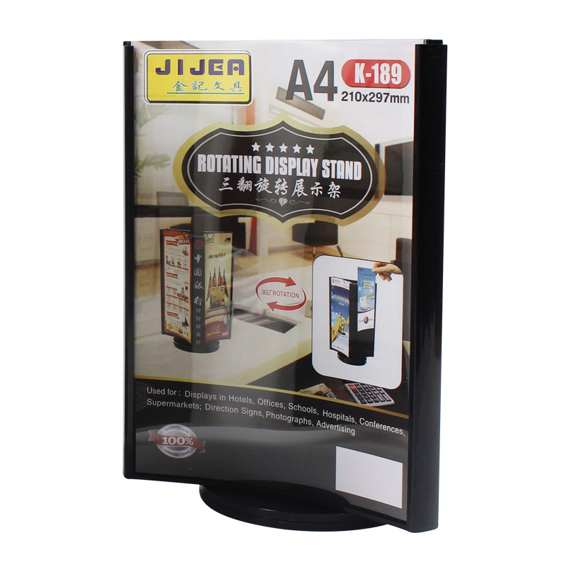 A4三面旋转展示架酒店前台台卡高清透明餐牌菜单广告牌银行桌面台签三角台牌价格展示牌桌牌酒水牌旋转宣传架