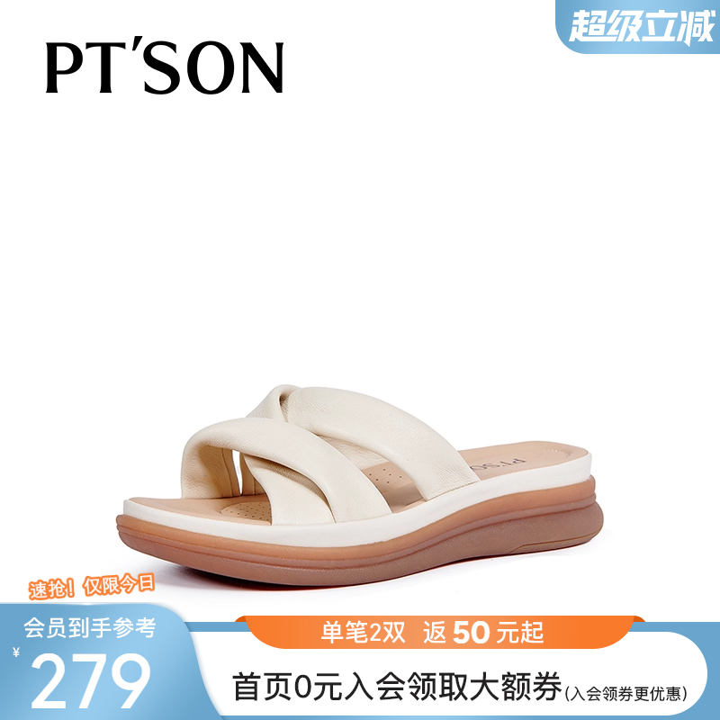 软底厚底增高休闲女拖鞋 商场同款 新款 女夏季 百田森羊皮拖鞋