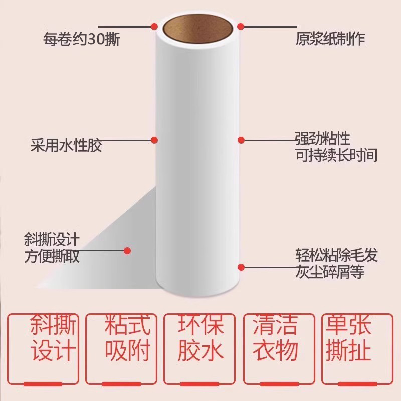 粘毛卷纸可撕式 纸沾毛滚筒纸替换芯黏毛器贴刷强力16厘米19cm2410