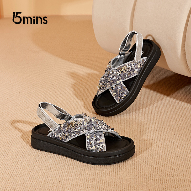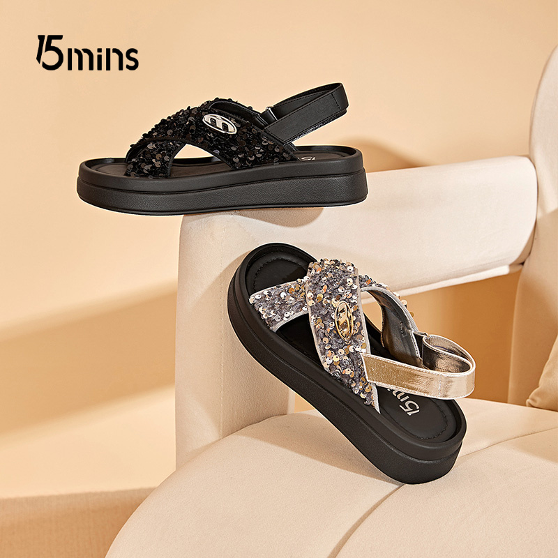 百搭中跟沙滩鞋 15mins露趾厚底凉鞋 夏季 2025新款 女外穿配裙罗马鞋