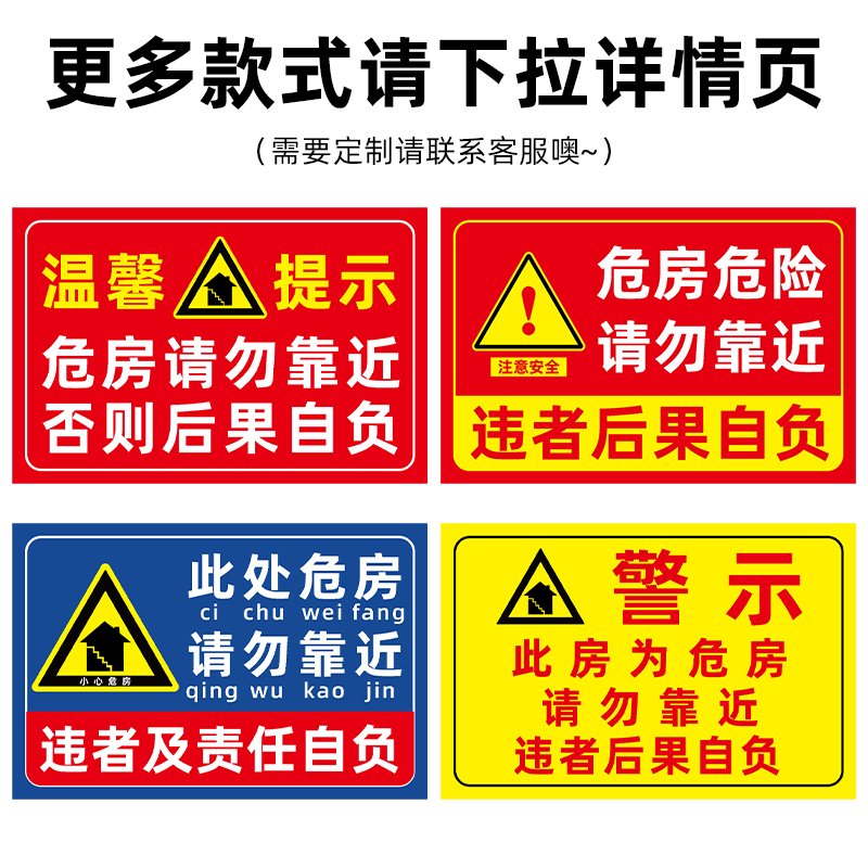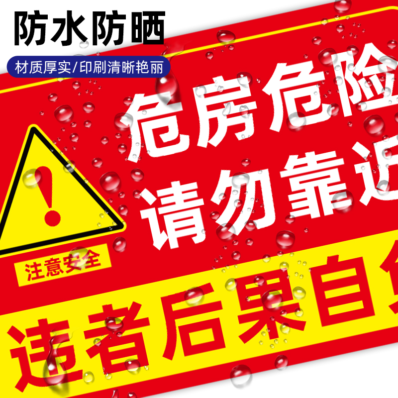 危房警示牌注意安全提示牌危险请勿靠近违者后果自负小心危房禁止入住警告牌警示标贴纸宣传告示标志牌定制