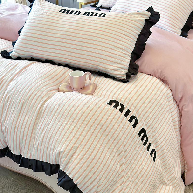 2025新款 花边四件套公主风学生宿舍单人被套床笠 水洗棉韩版
