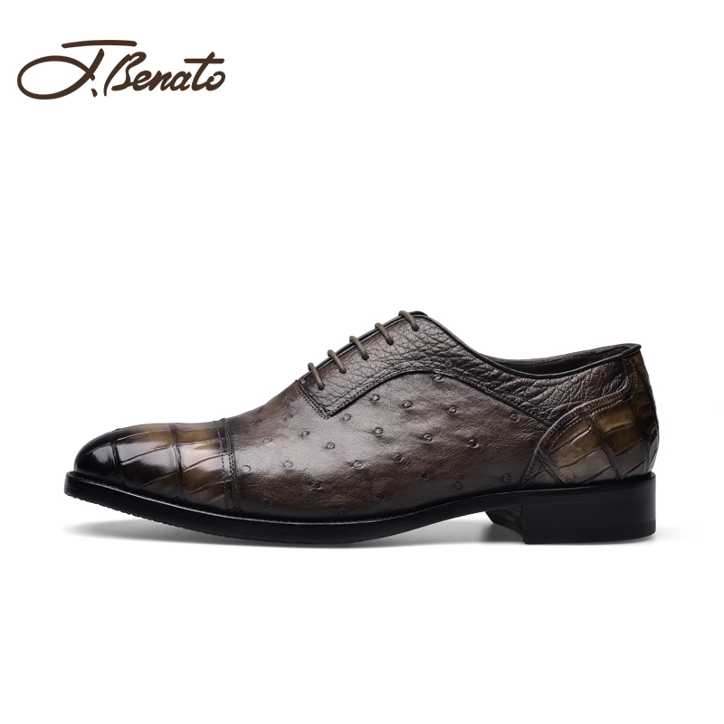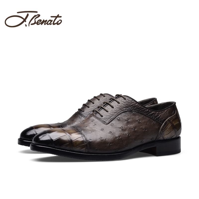 男士 专柜款 高端皮鞋 真皮鸵鸟皮牛津鞋 男商务正装 jbenato宾度男鞋