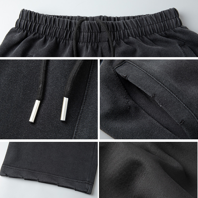 巴家潮牌运动老爹裤 春秋宽松直筒休闲长裤 男士 重磅水洗灰破坏卫裤