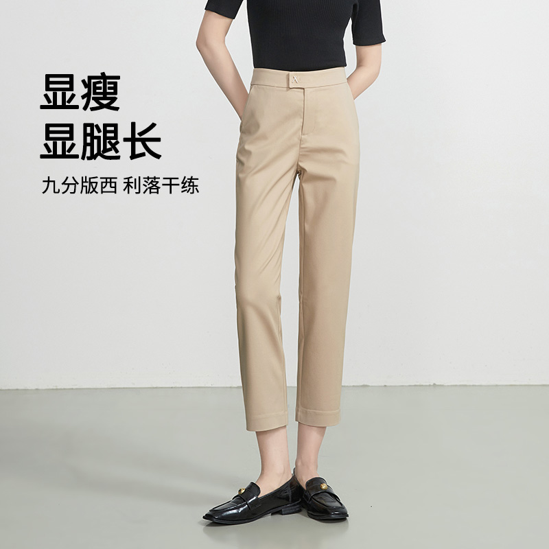 显瘦简约八分烟管裤 逸阳高腰休闲九分直筒裤 修身 新款 子 女2025夏季