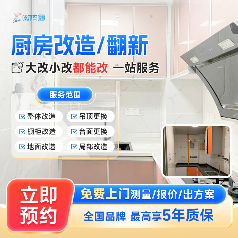 厨卫改造厨房卫生间墙面局部修刷新防水补漏瓷砖美缝上门服务定金