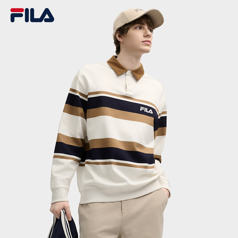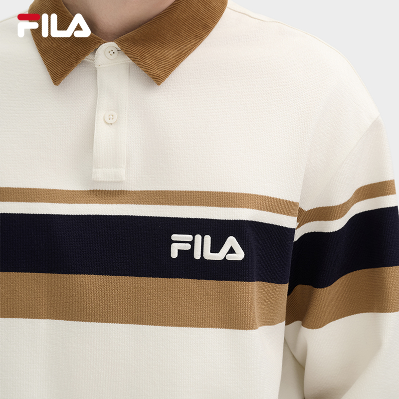 新款 FILA 2025春季 POLO衫 撞色纯棉宽松上衣 斐乐官方男子针织长袖