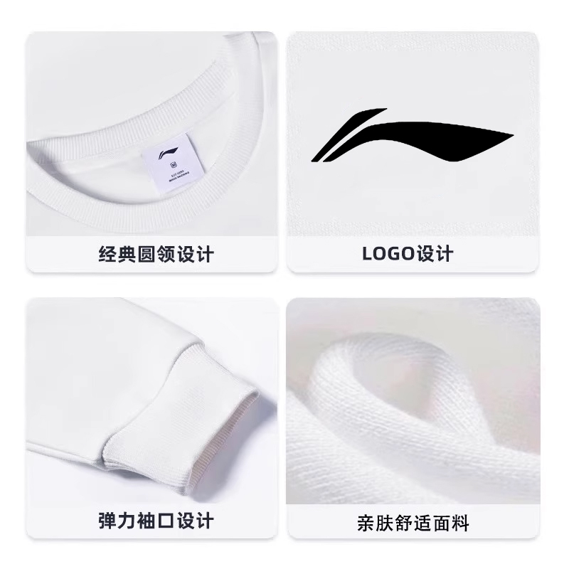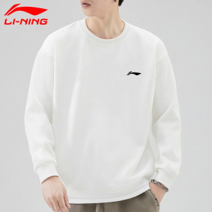 运动服女款 黑色上衣宽松长袖 秋冬情侣圆领套头衫 李宁加绒卫衣男士