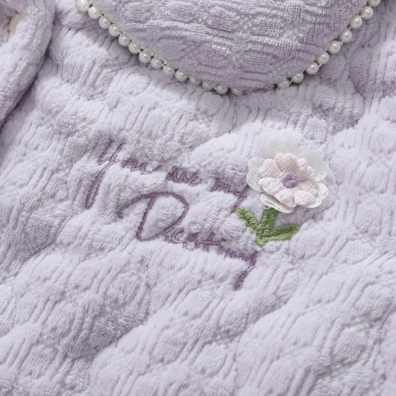 家居服套装 抗静电三层加厚法兰绒大码 冬季 芬腾珊瑚绒夹棉睡衣女款
