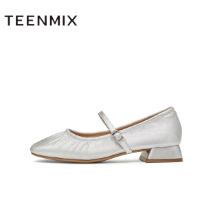 真皮浅口单鞋 新款 子E1T1DCQ5预 女2025秋季 百丽复古粗高跟玛丽珍鞋