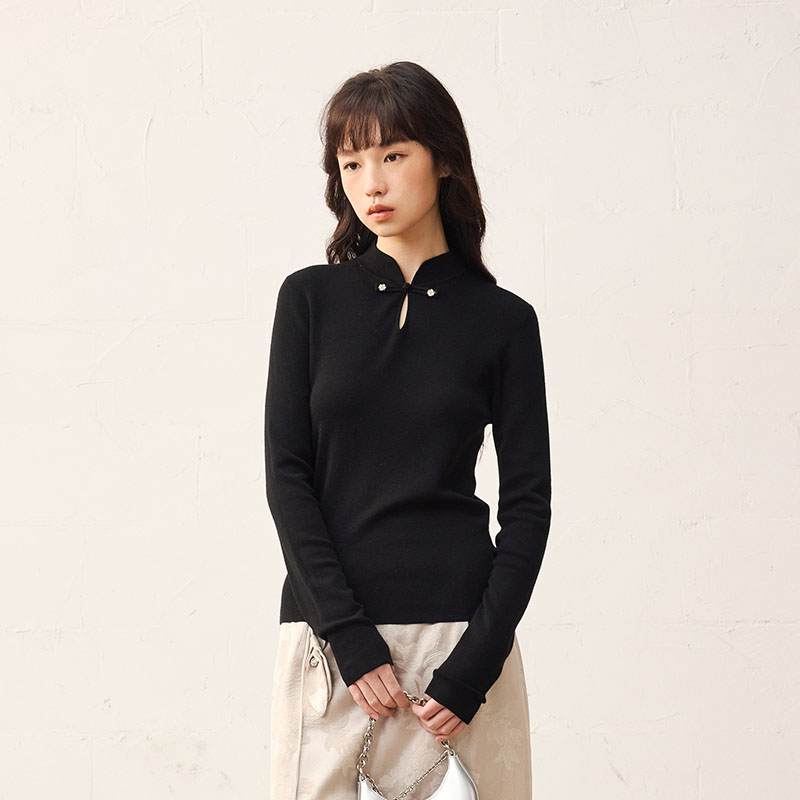 针织上衣羊毛单穿打底衫 非鱼新中式 旗袍领修身 2025春新款 羊毛衫