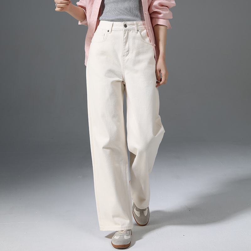 子宽松休闲小个子直筒裤 春秋梨型身材裤 女2025新款 高腰阔腿牛仔裤