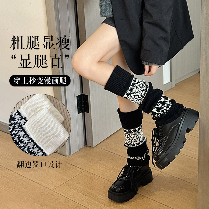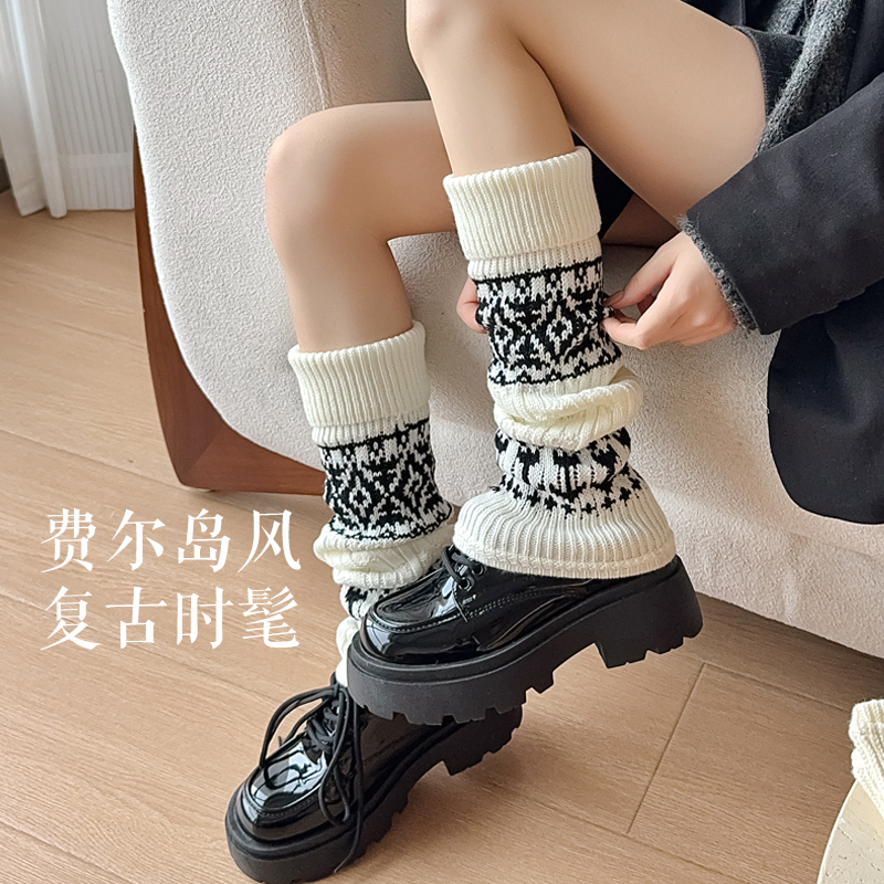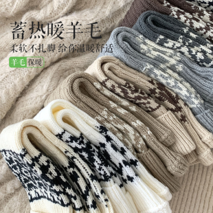 费尔岛袜套羊毛保暖女士堆堆袜子秋冬季 加厚脚套复古翻边针织腿套