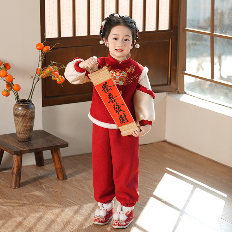 女孩喜庆套装 汉服女童2025新款 中国风唐装 拜年服冬季 秋冬儿童古装