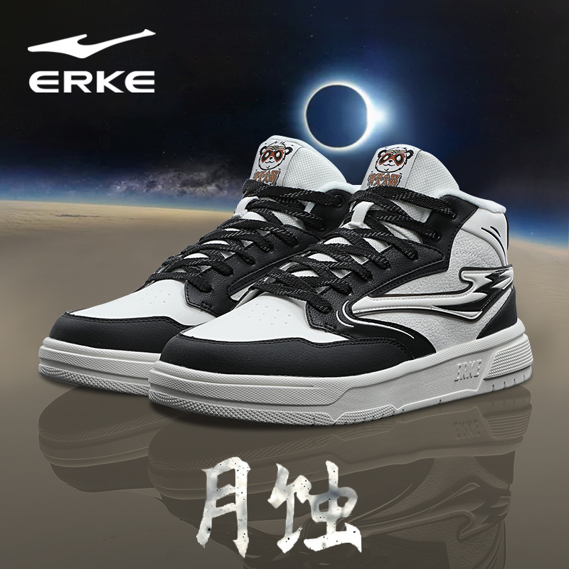 厚底高帮鞋 电池熊猫鸿星尔克板鞋 休闲运动鞋 加绒保暖棉鞋 子 男冬季