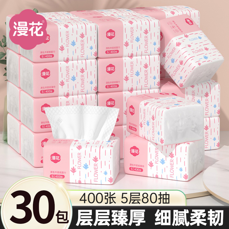 漫花400张纸巾抽纸家用整箱批实惠装 纸抽厕纸卫生纸餐巾纸面巾纸