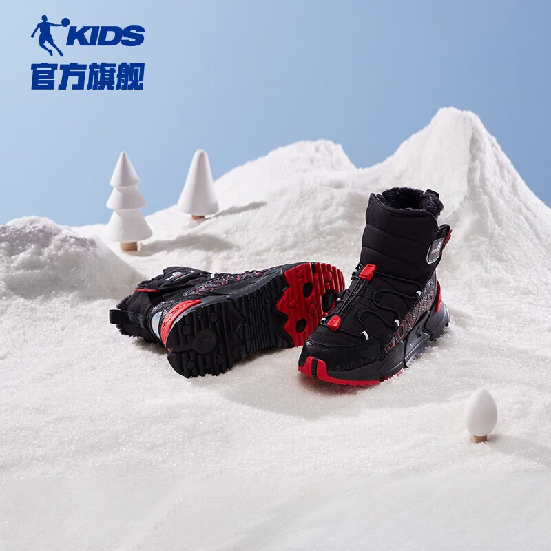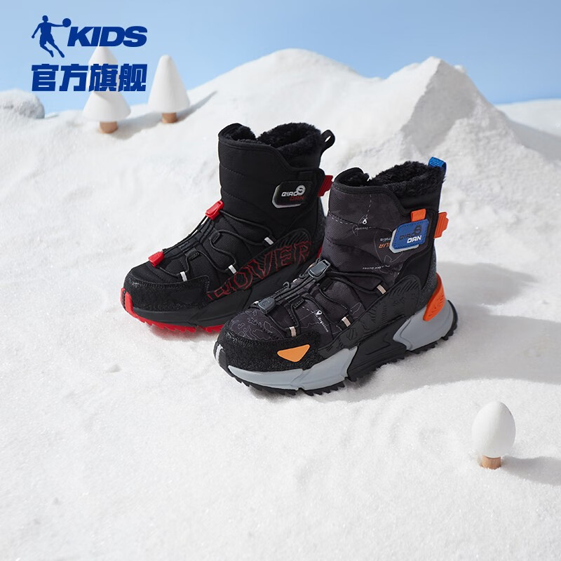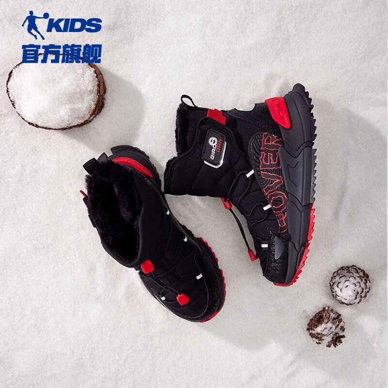 防滑耐磨中大童保暖棉鞋 乔丹儿童鞋 高帮加绒加厚运动鞋 秋季 二棉鞋