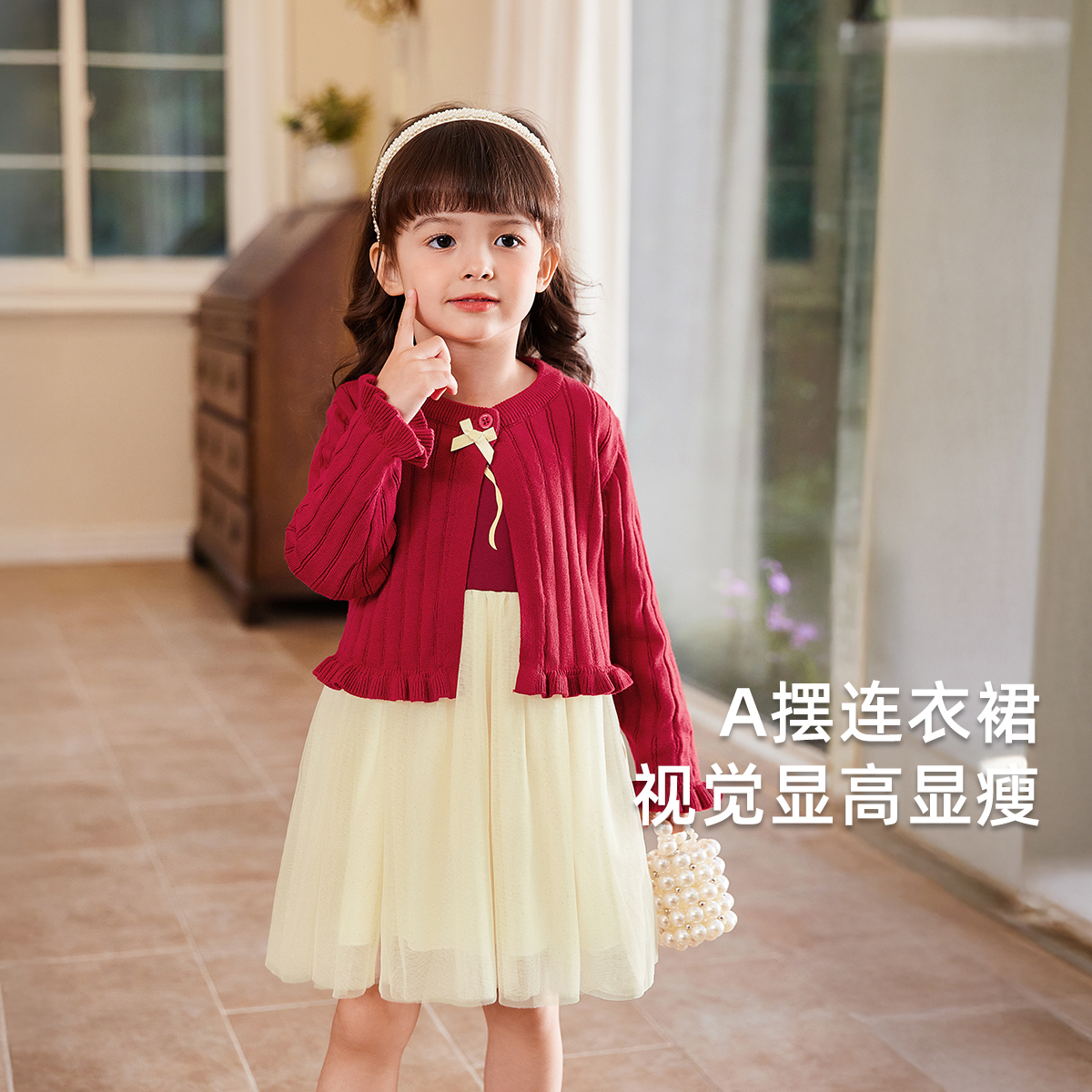 裙秋季 衬衫 可露丽穿搭格纹拼接连衣裙 漂亮系带掐腰假两件式 KEIKO
