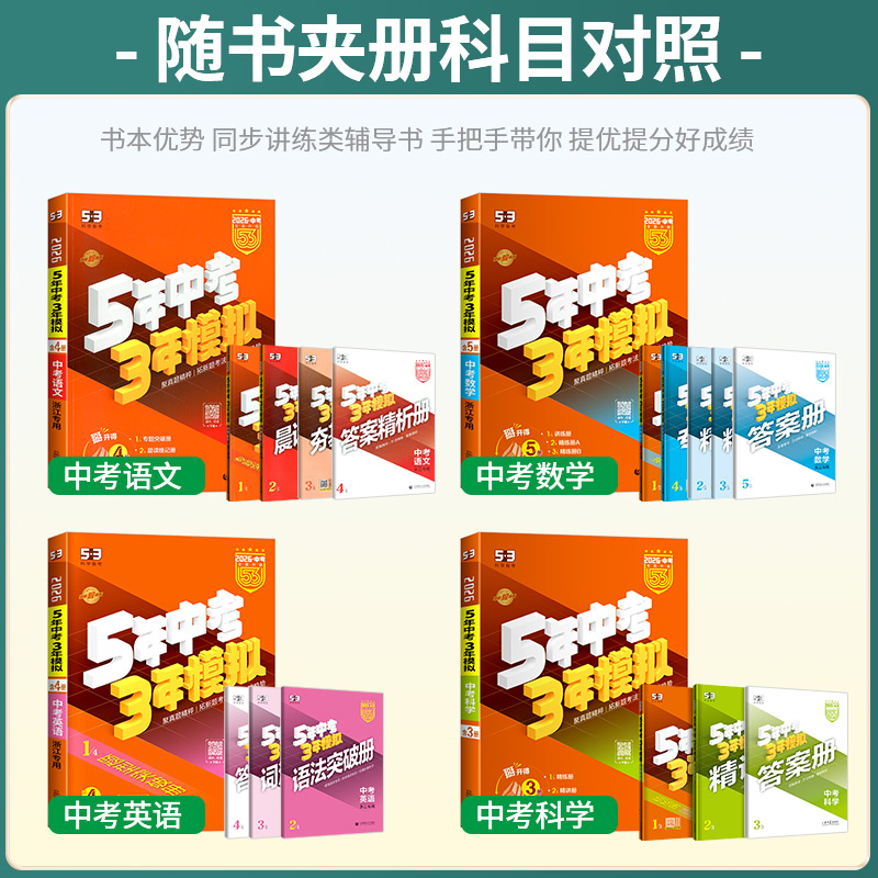 浙江专用2026五年中考三年模拟语文数学英语科学历史与社会浙教版 九年级初中初三必刷题五三总复习历年真题模拟辅导书资料训练2025