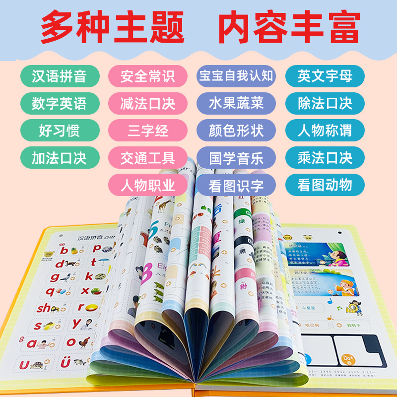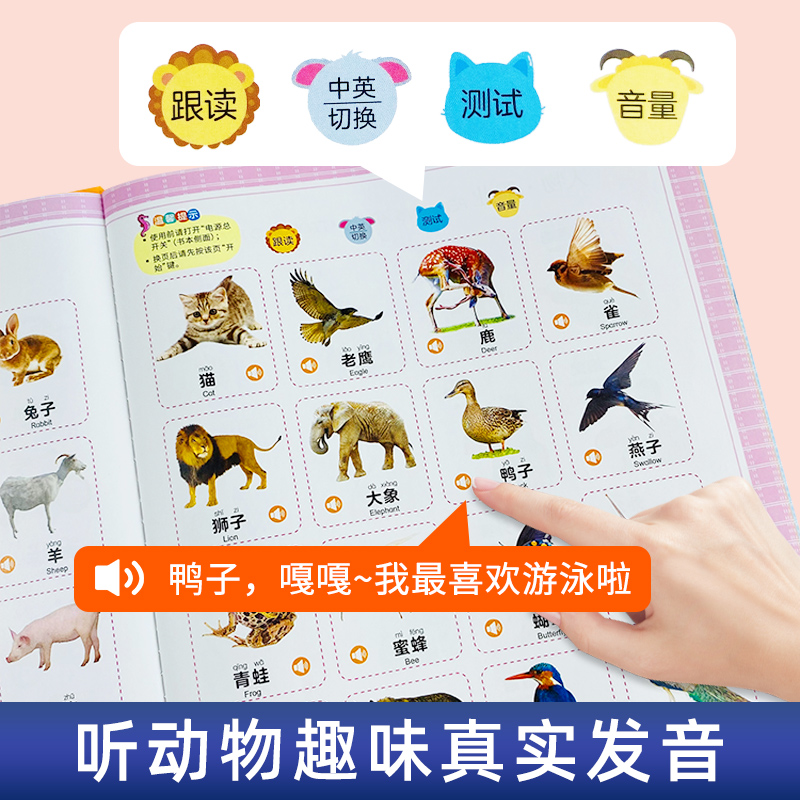 3岁宝宝学说话启蒙认知小百科书本触摸书籍充电撕不烂儿童益智看图绘本 早教有声书幼儿手指点读发声中英双语有声读物 会说话