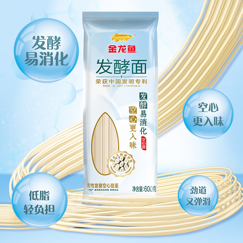 金龙鱼活性发酵空心挂面600g 3面条汤面拌面易消化宝宝面