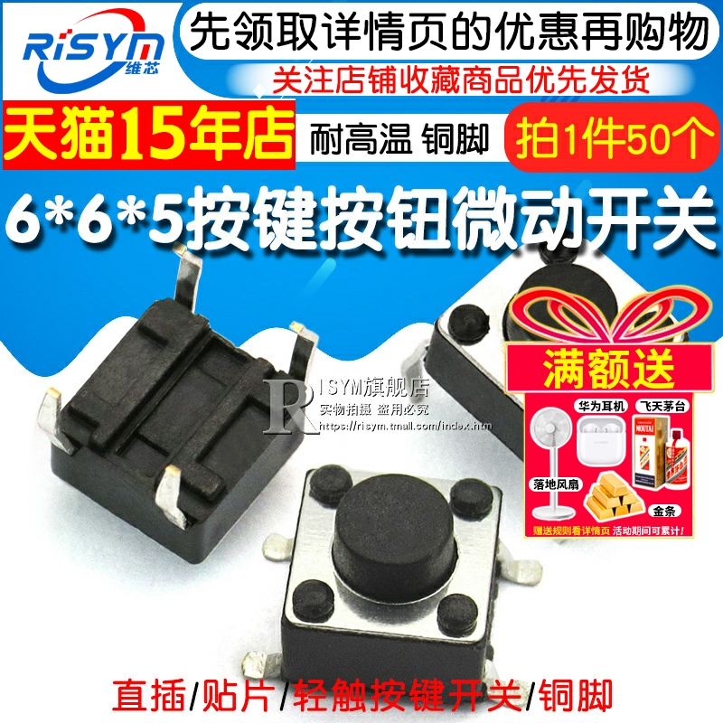 直插贴片电磁炉 5MM按键按钮微动轻触开关小铜脚四脚4脚立式