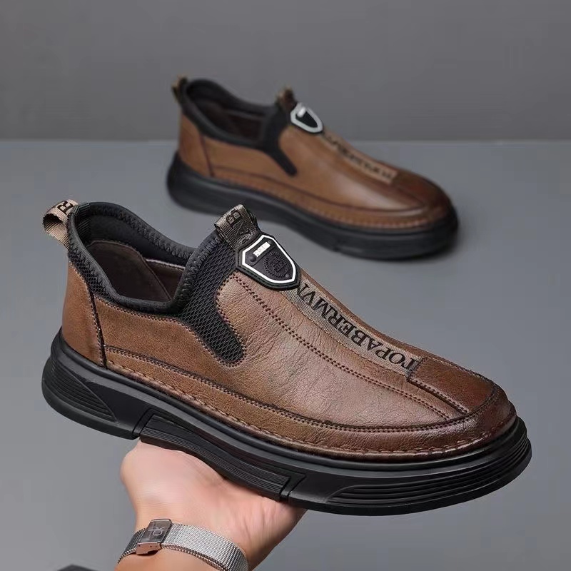 秋季 真皮透气软底舒适爸爸鞋 皮鞋 中年商务休闲皮鞋 男士 老人头男鞋
