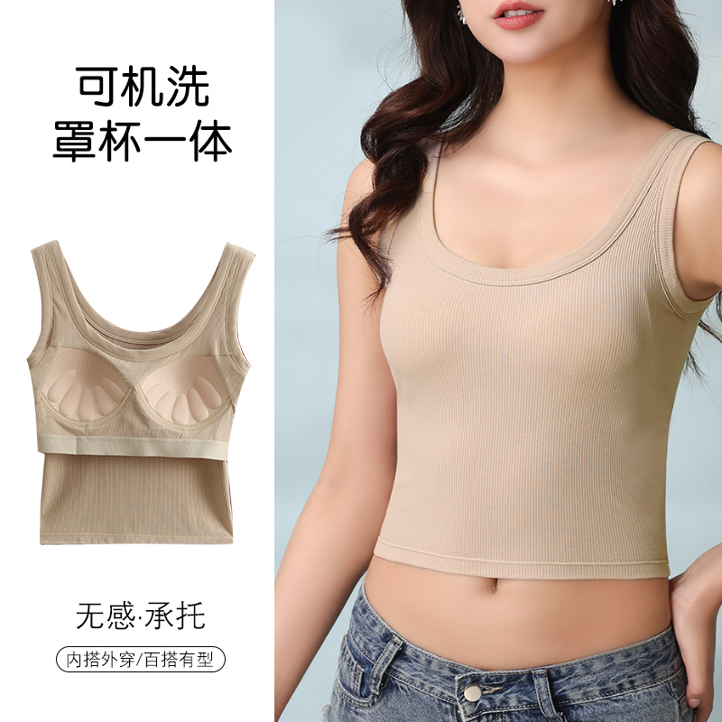 蕉树吊带内搭外穿带胸垫薄款 小胸聚拢裸感固定杯防下垂防滑抹胸