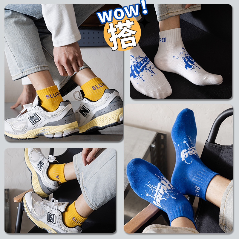 短袜款 袜子男款 纯棉中筒袜秋冬抗菌防臭运动青少年袜子男白色男士