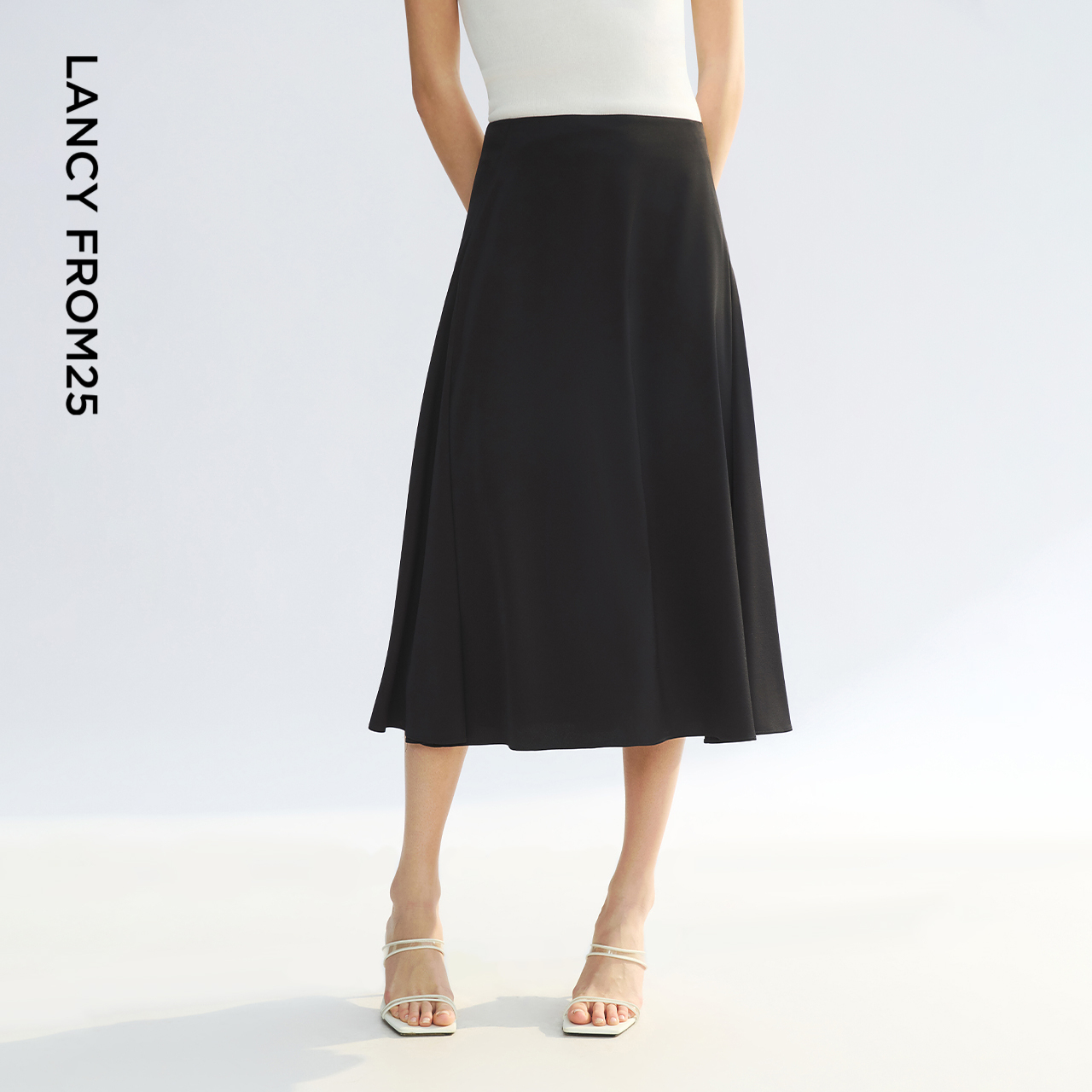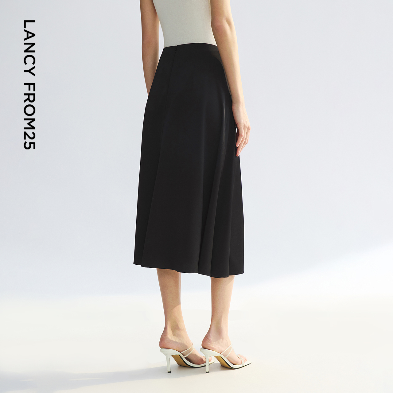 预售COCOBELLA丝光缎面压褶半身裙秋温柔风垂顺遮胯筒裙HS7026