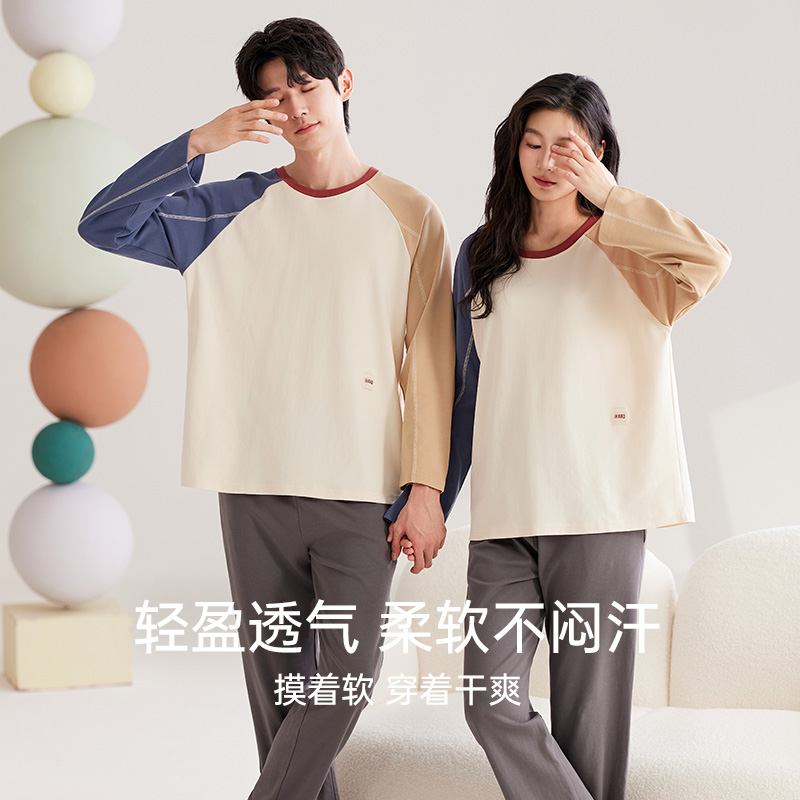 超柔软 家居服可外穿情侣款 纯棉睡衣女长袖 春夏新款 长裤 新一系