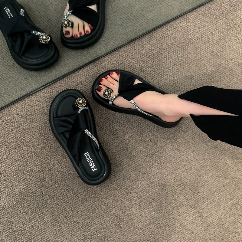绝美配裙子增高黑色凉鞋 厚底高级感法式 女夏外穿2025新款 夹趾拖鞋