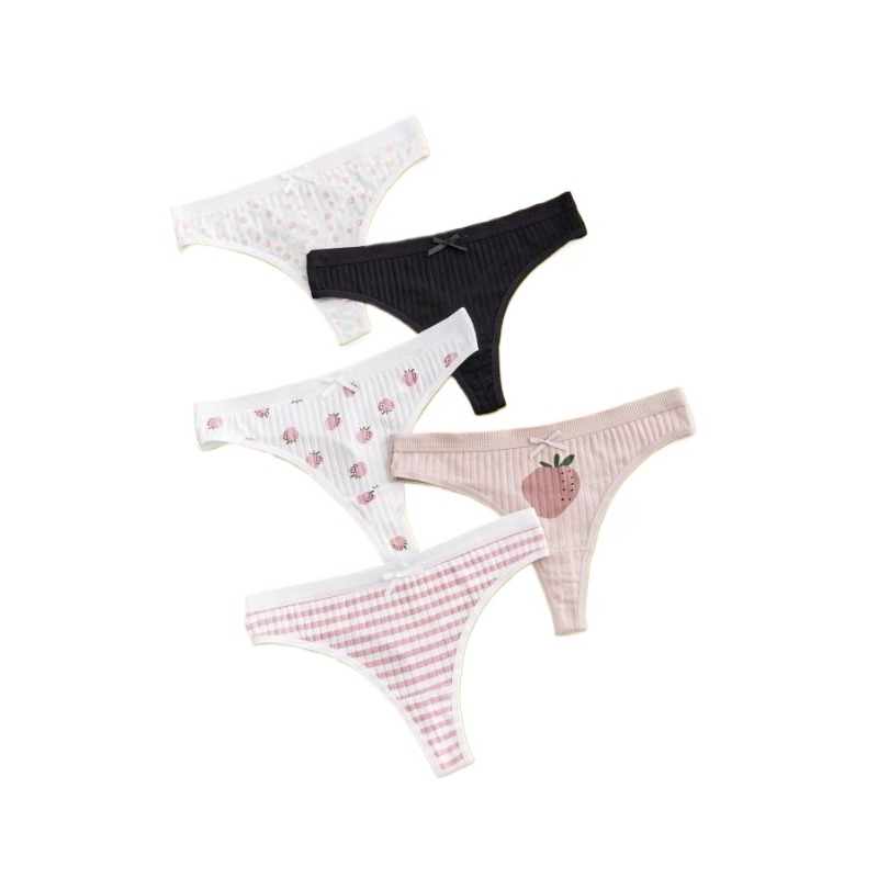 5条甜美可爱日系少女低腰丁字裤 纯棉舒适透气无痕蝴蝶结女士内裤