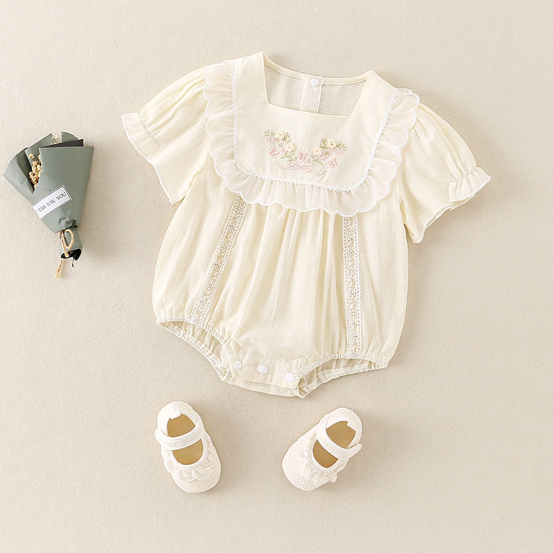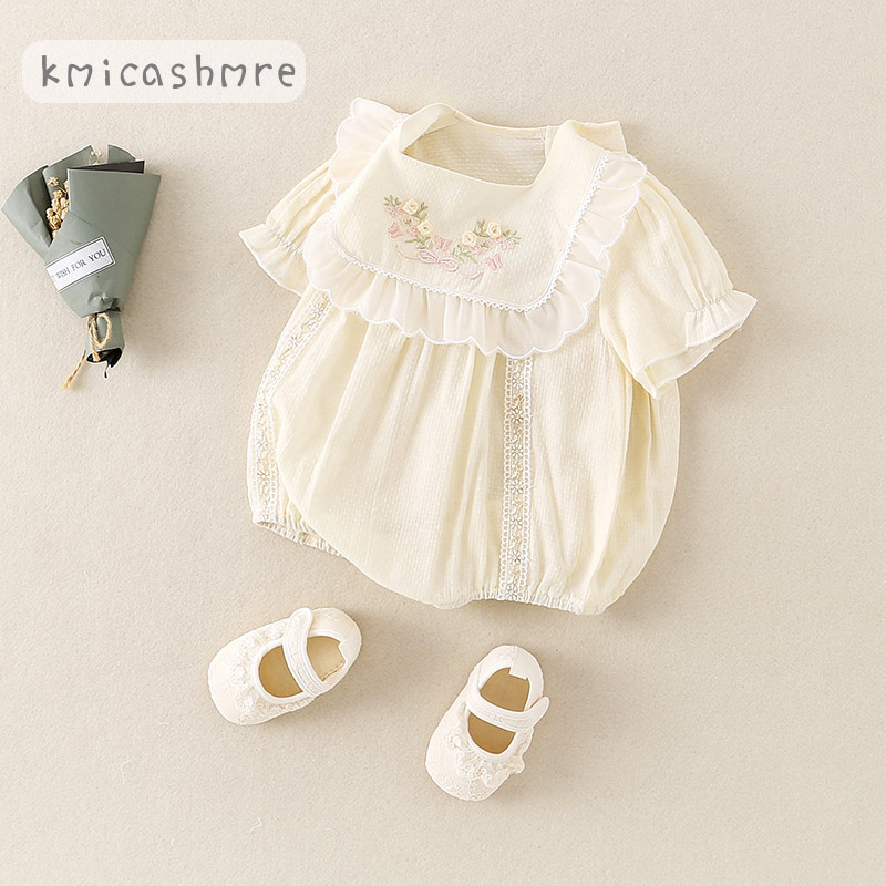 刺绣包屁衣外出服 连体衣韩版 kmi婴儿夏天衣服夏款 女宝宝薄款