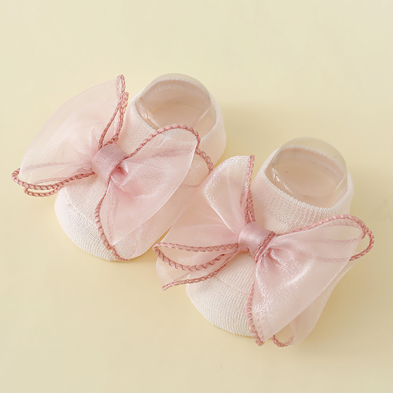 婴儿发带地板袜子套装 韩国女宝蝴蝶结发饰宝宝满月百天护囟门头饰