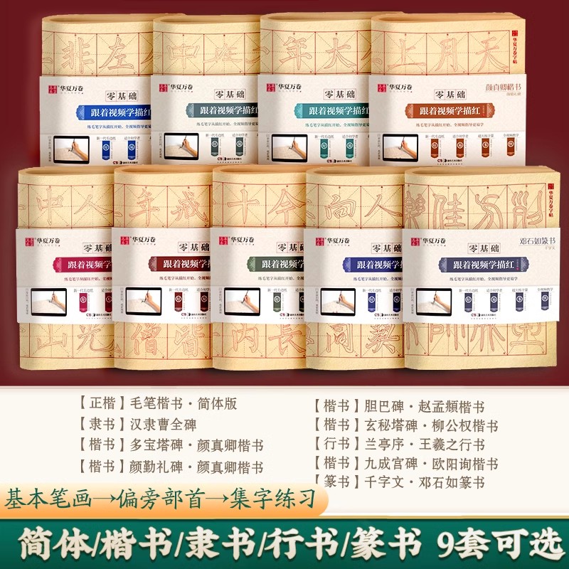 零基础跟着视频学描红曹全碑赵孟俯頫胆巴碑王羲之兰亭序颜真卿多宝塔碑颜体颜勤礼碑欧阳询九成宫邓石如篆书千字文初学者毛笔字帖