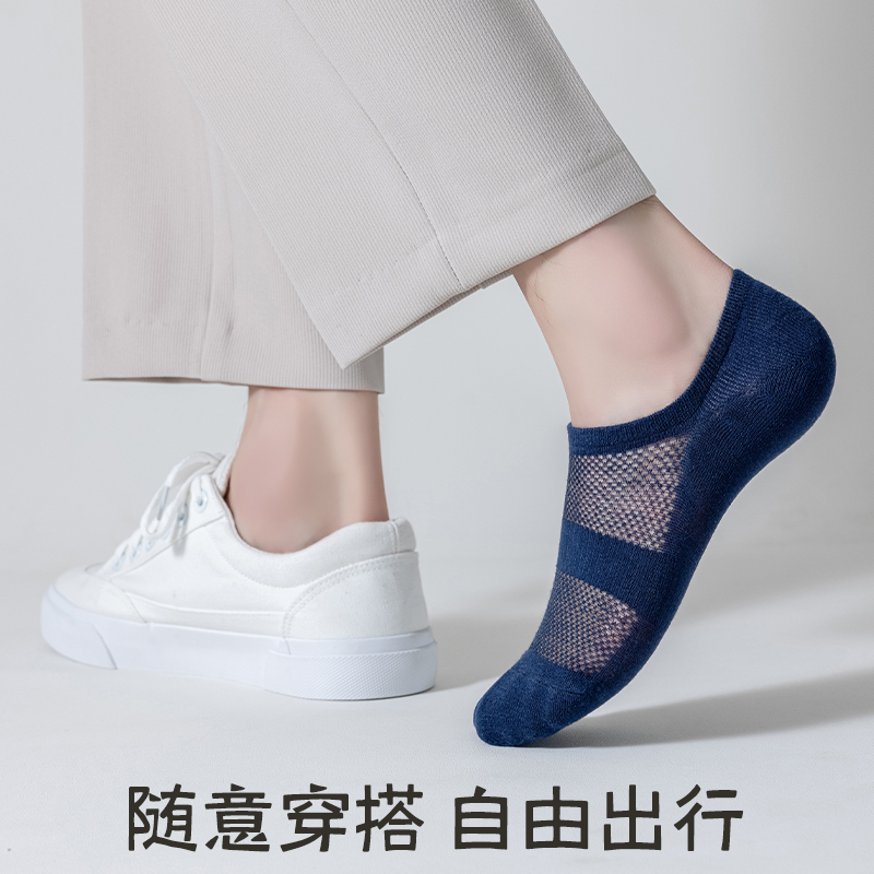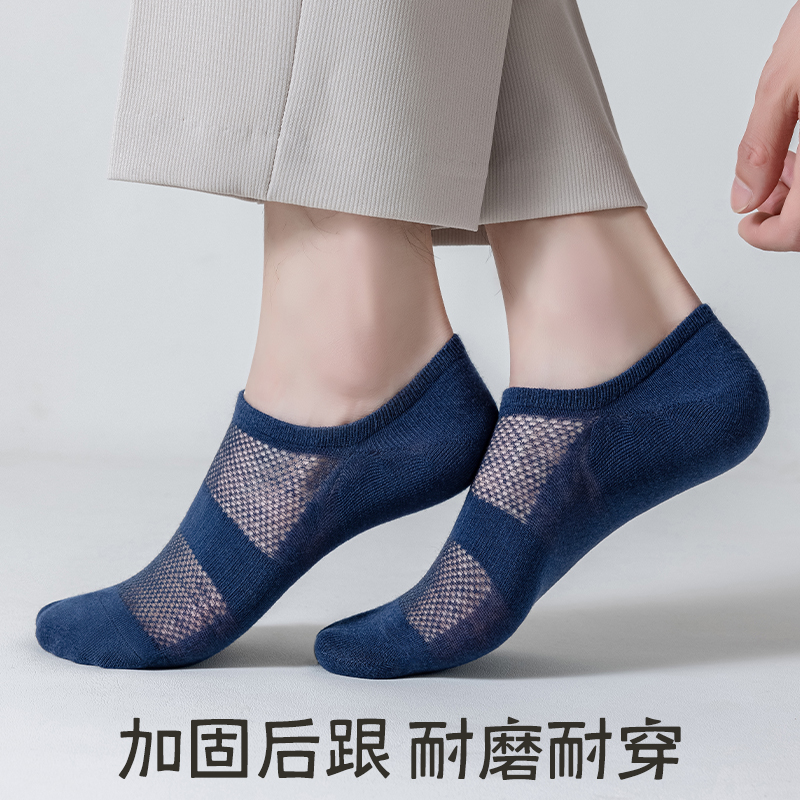 纯棉不掉跟隐形袜子低帮抗菌防臭浅口短袜夏款 网眼船袜男夏季 薄款