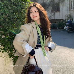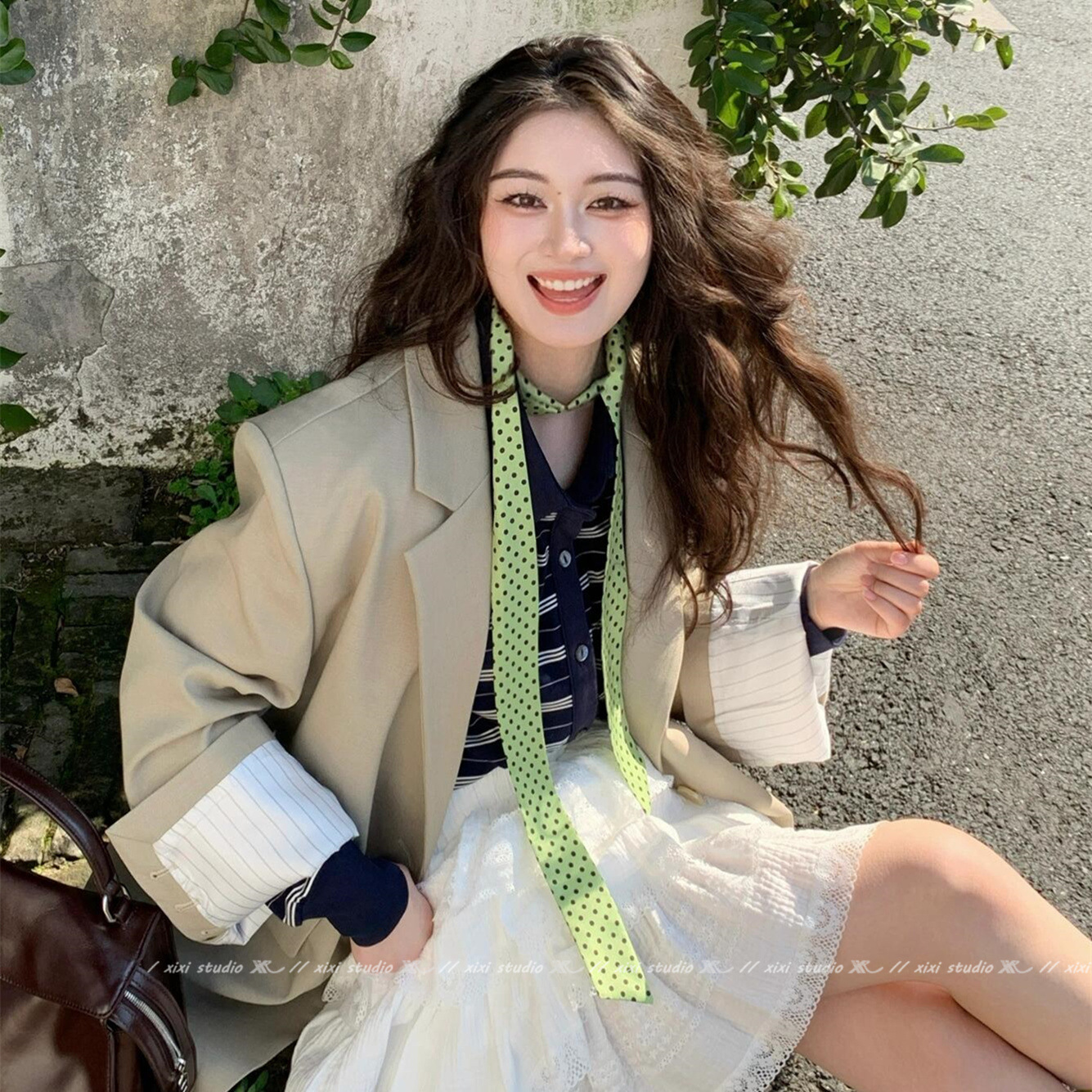 绿色长条小波点丝巾春季 穿搭细窄飘带系脖子领巾韩系ins风颈饰女