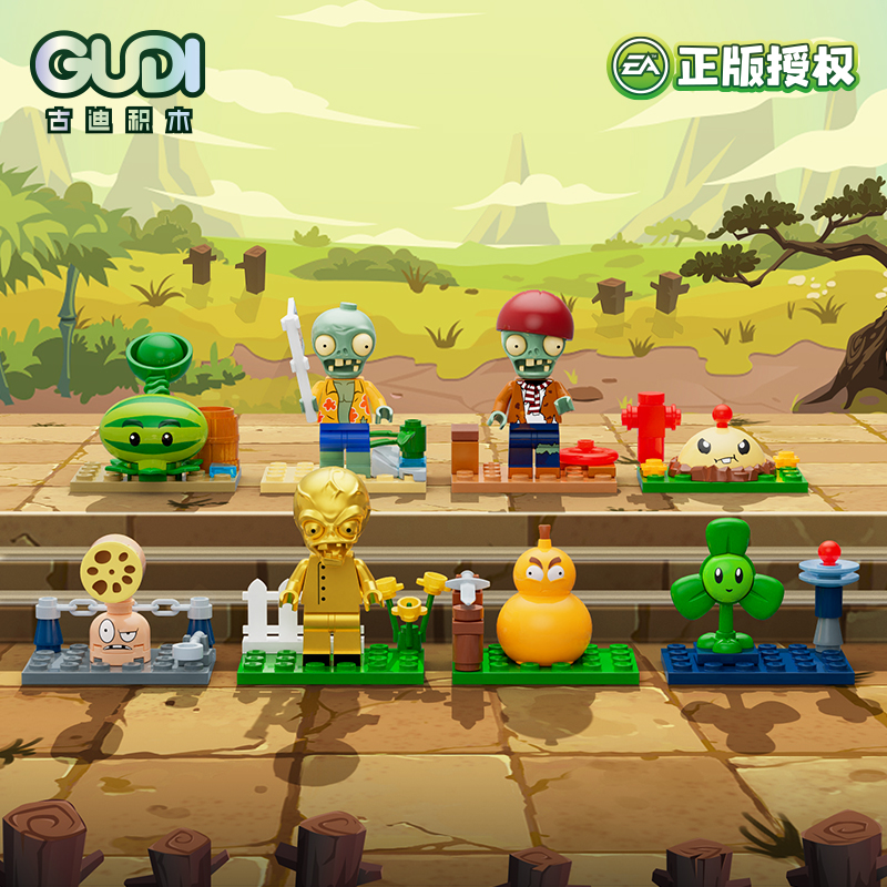 古迪积木植物大战僵尸正版 儿童益智拼搭场景摆件盲盒玩具 授权6