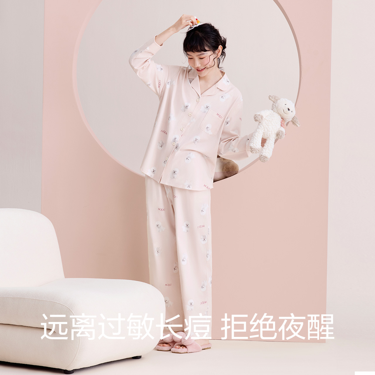 A类抑菌25春秋款 红豆居家柔软棉睡衣女长袖 可爱可外穿家居服套装
