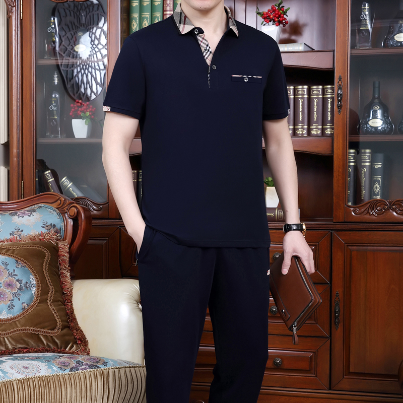 男中老年薄款 休闲运动套装 短袖 T恤长裤 夏装 跑步运动衣大码 爸爸装