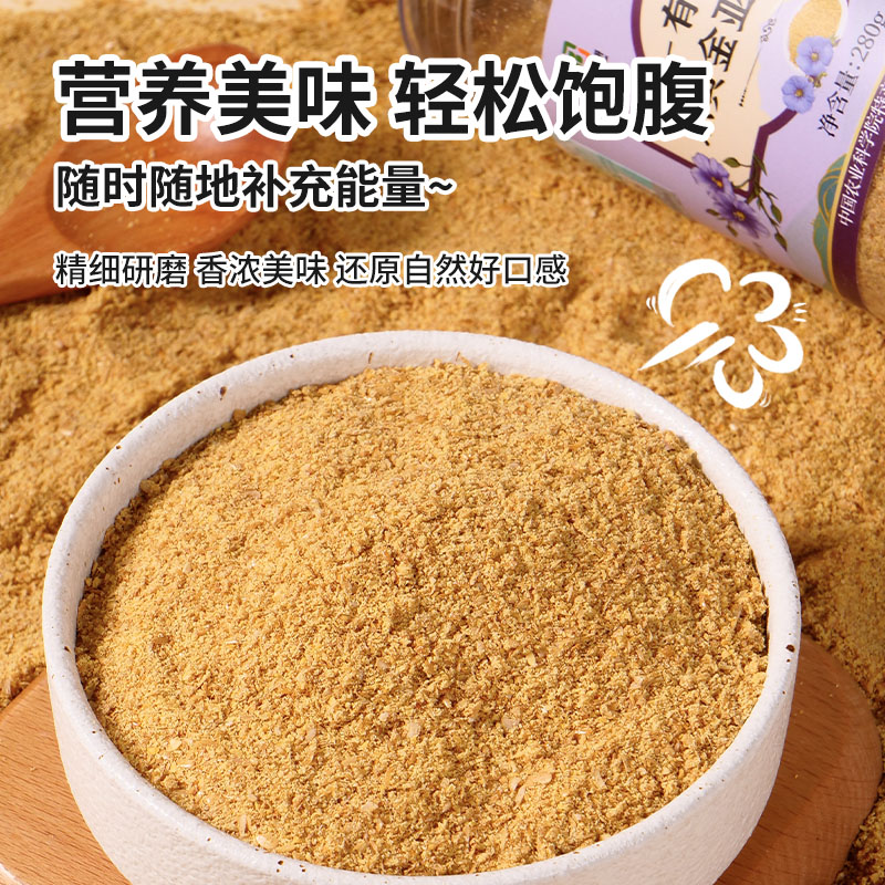 有机熟黄金亚麻籽粉天然高膳食纤维即食代餐中农特研保障配料干净