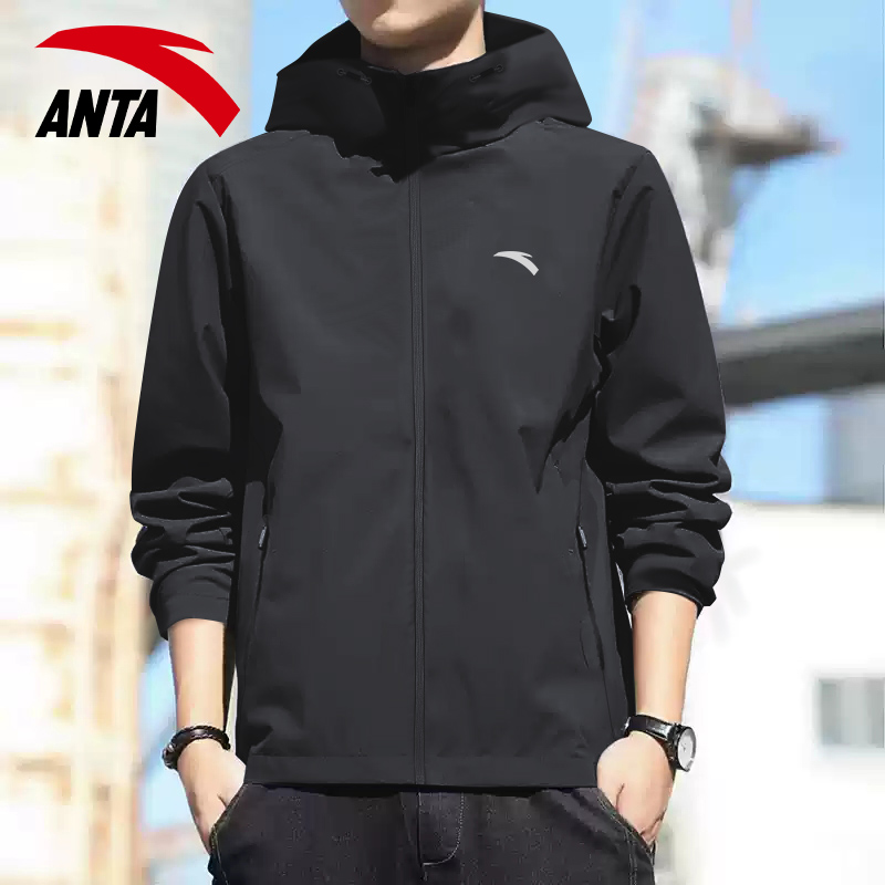 骆驼运动外套女秋季 黑色连帽风衣外套户外登山防水防风薄绒夹克男
